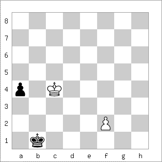 Diagram 41. above is a classic zugzwang endgame position. If white has the move, the game is drawn, either 1. Kb6 stalemate, or 1. K-any other legal move